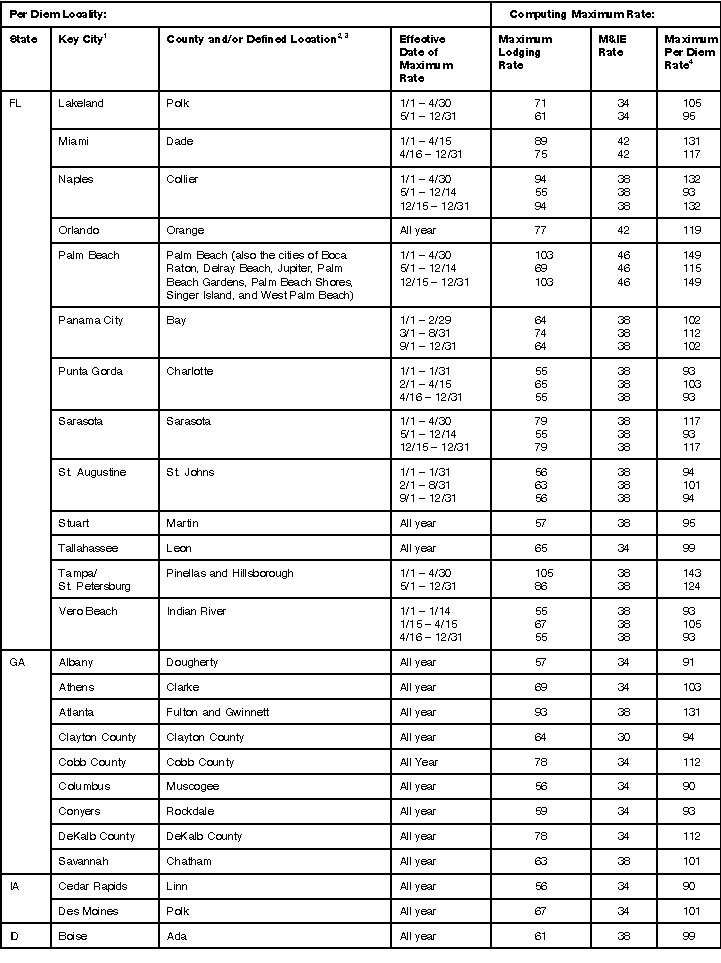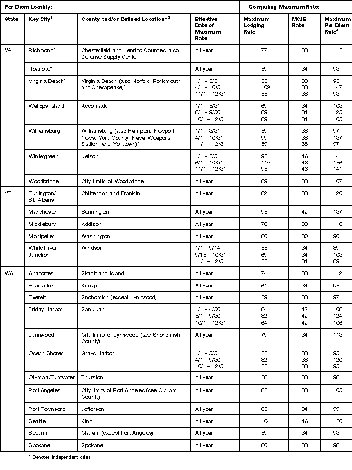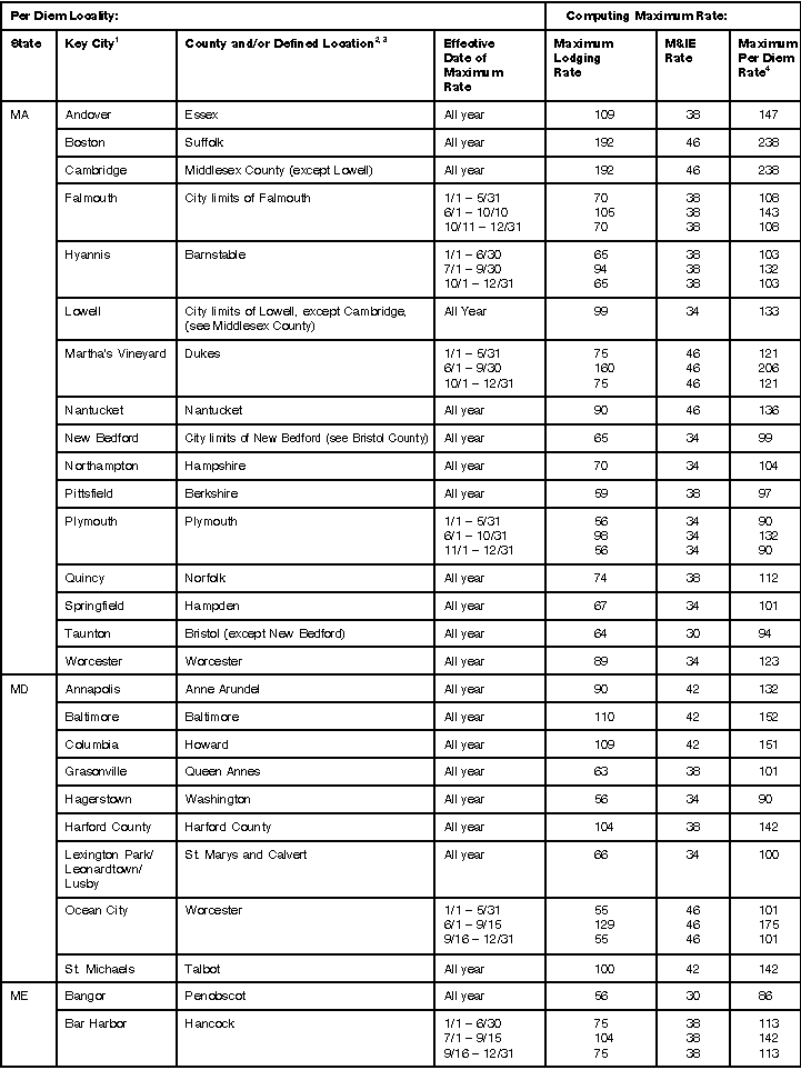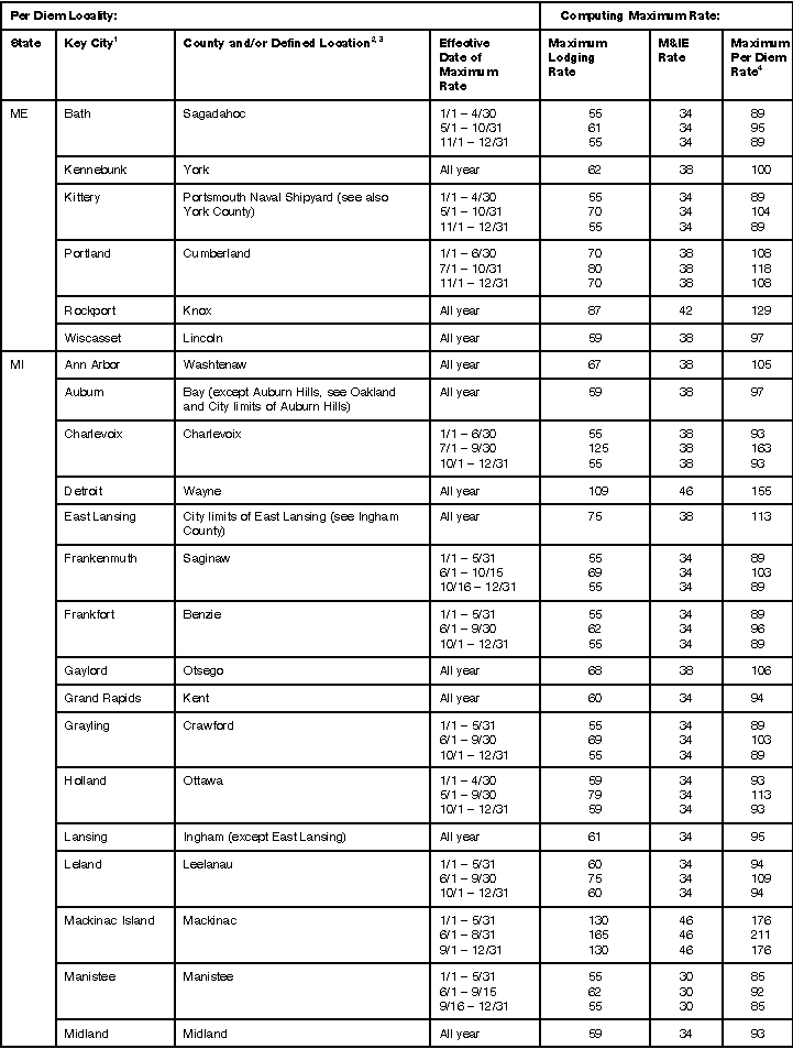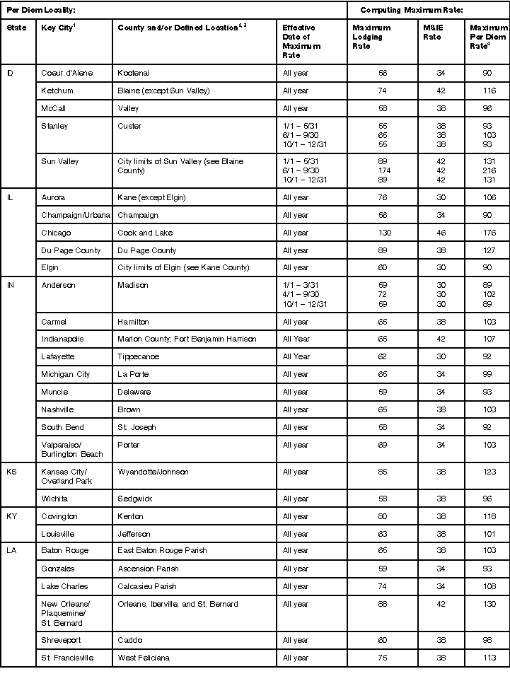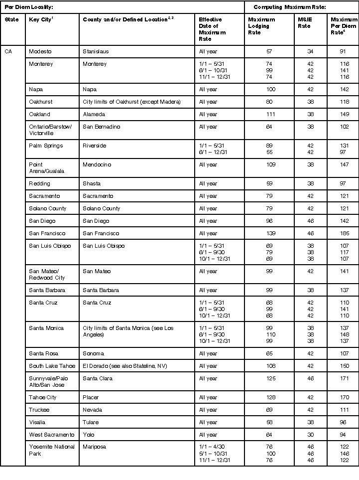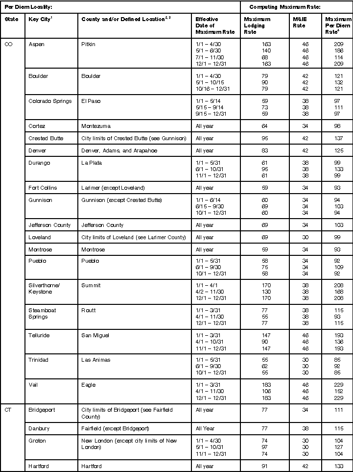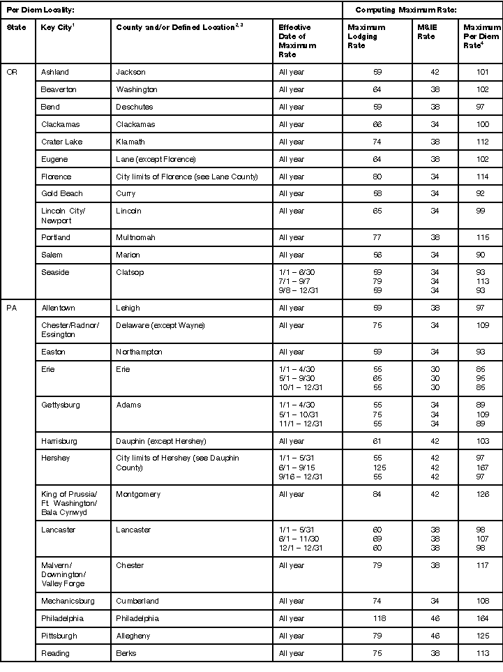 Localities Eligible for $201 ($42 M & IE) Per Diem Amount Under the High-low Substantiation Method (page 2)