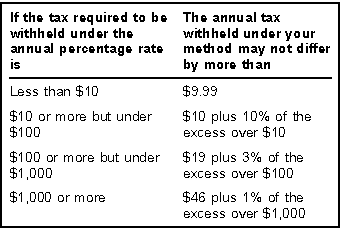 tolerances contained in Regulations section 31.3402(h)(4)-1 as shown
