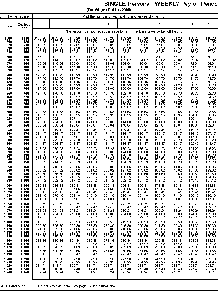 - Single Persons - Weekly, Paid Wages $600 - $1250