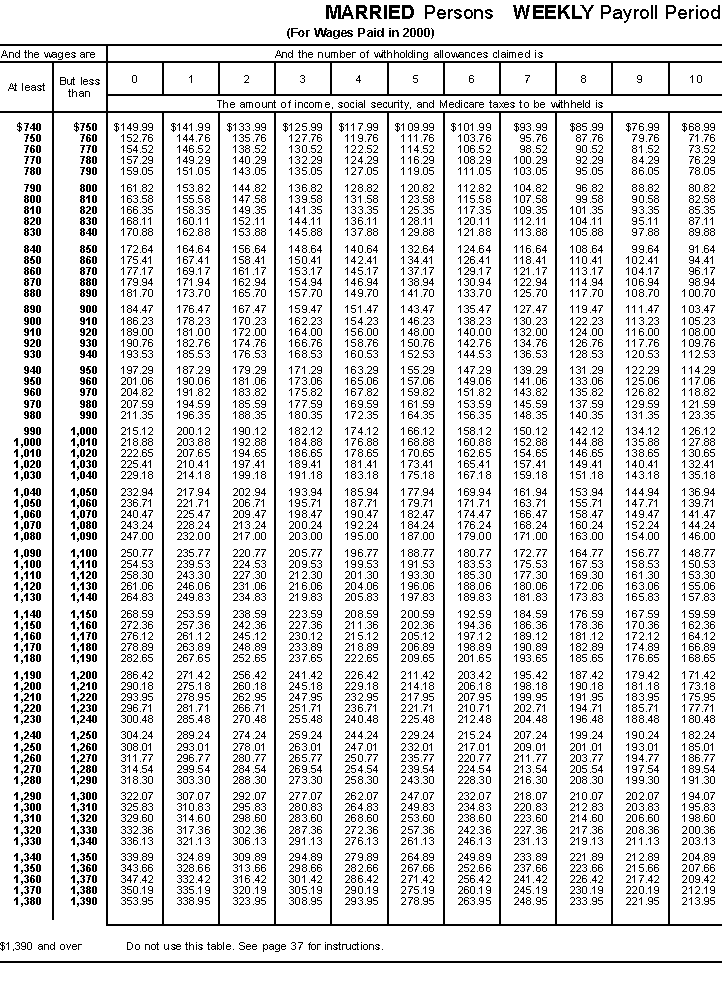 - Married Persons - Weekly, Paid Wages $740 - $1390
