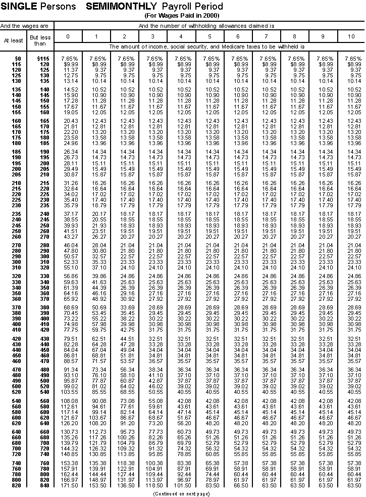 - Single Persons - SemiMonthly, Paid Wages $0 - $840