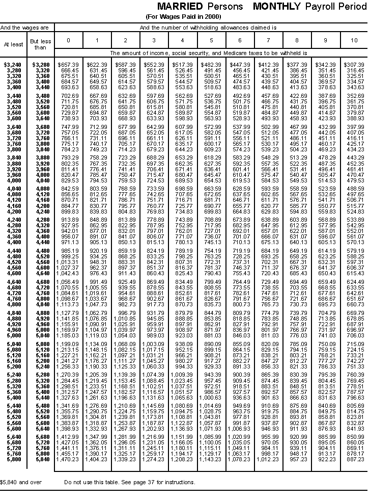- Married Persons - Monthly, Paid Wages $3240 - $5840