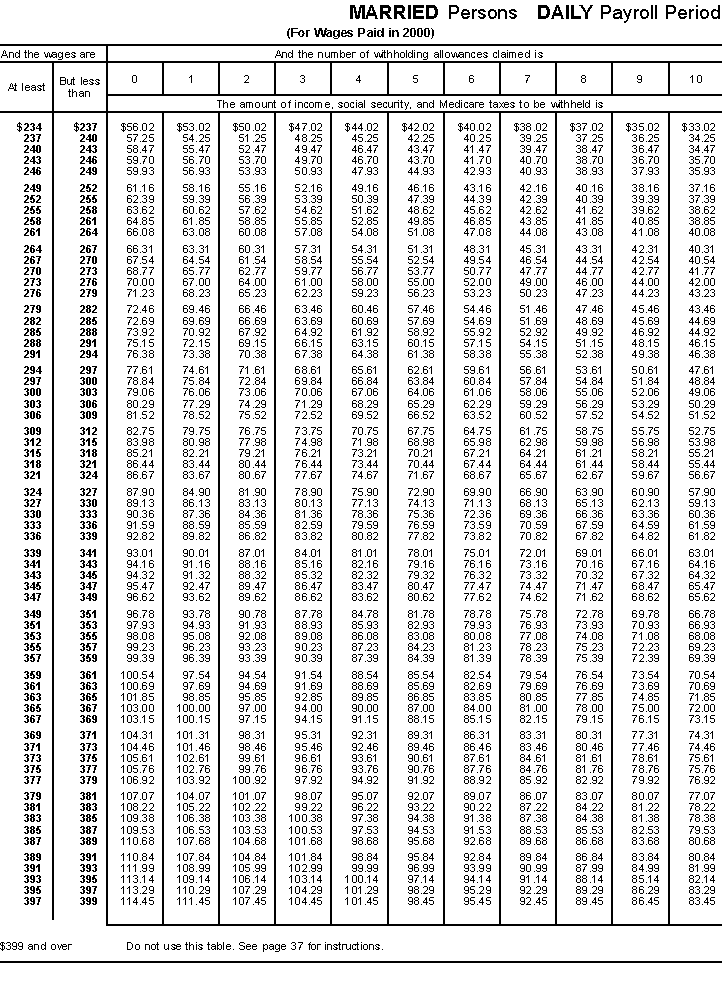 - Married Persons - Daily or Misc., Paid Wages $234 - $399