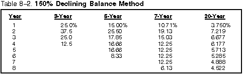 7-, and 20-year property using the half-year convention. The table