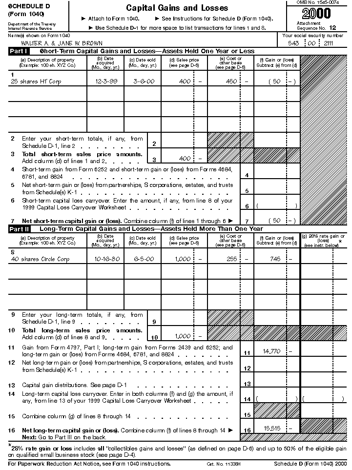 tax on $19,000 using Part IV of Schedule D (not shown) and enters the