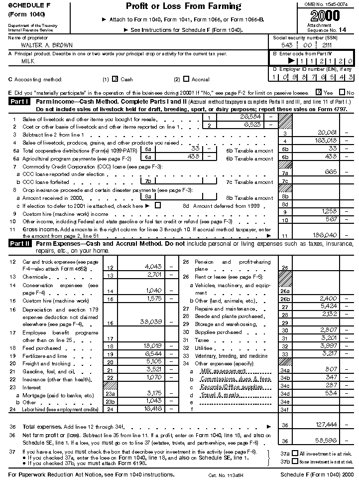 of his $58,596 of ordinary farm income from Schedule F. He could have