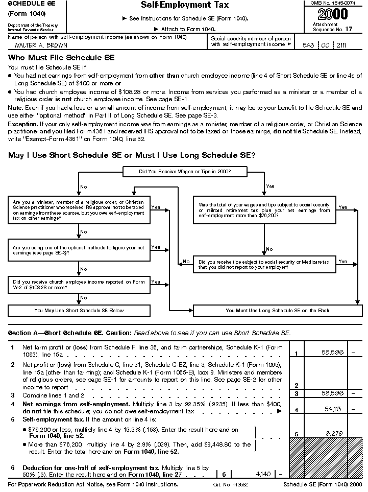 of tax he figured using Schedule D. Therefore, he enters on line 40 of