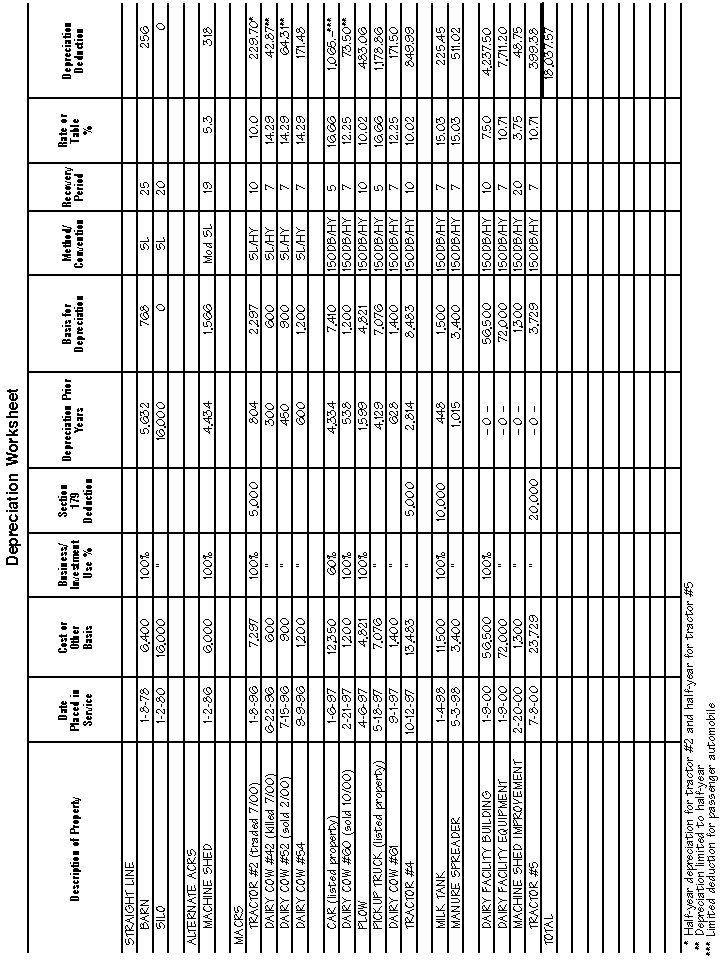 Worksheet that follows Form 4562. Mr. Brown has filed all