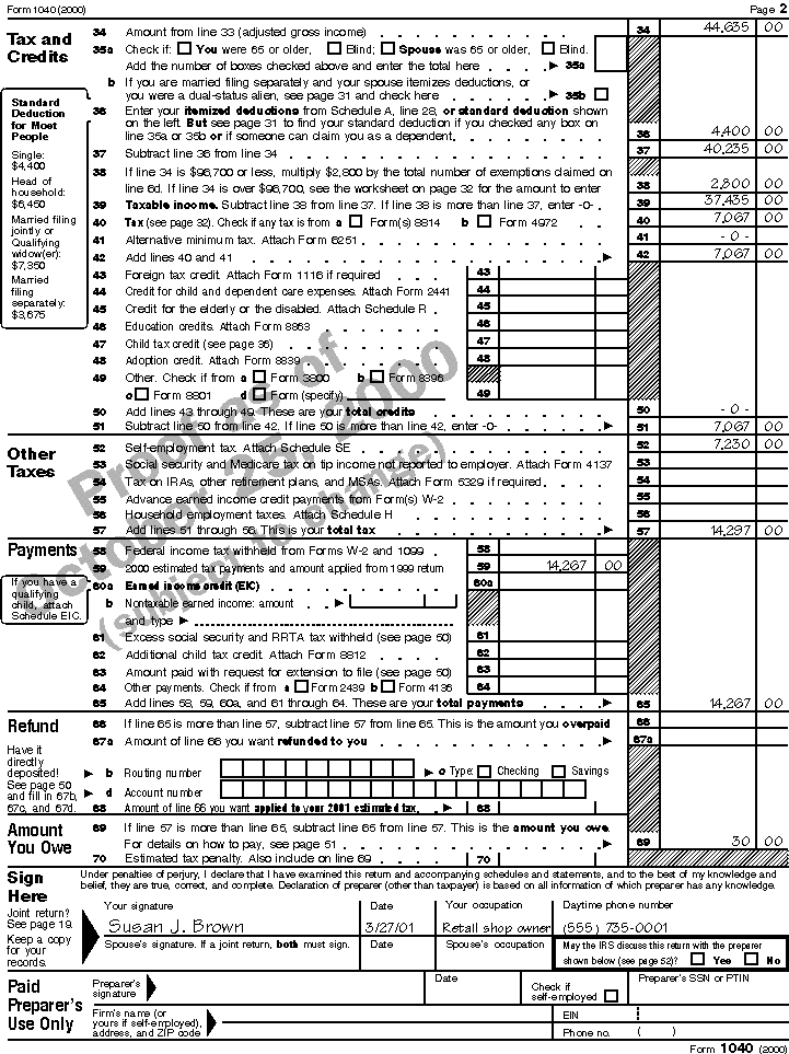 Susan uses the Tax Table in the Form 1040 instructions to figure