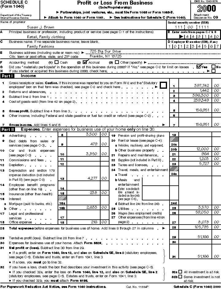 Susan uses Part III on page 2 of Schedule C to figure her cost of
