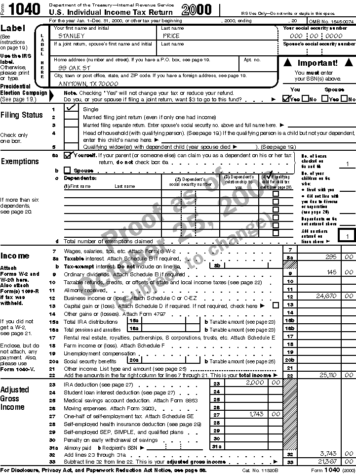 Stanley uses the Tax Table in the Form 1040 instructions to figure