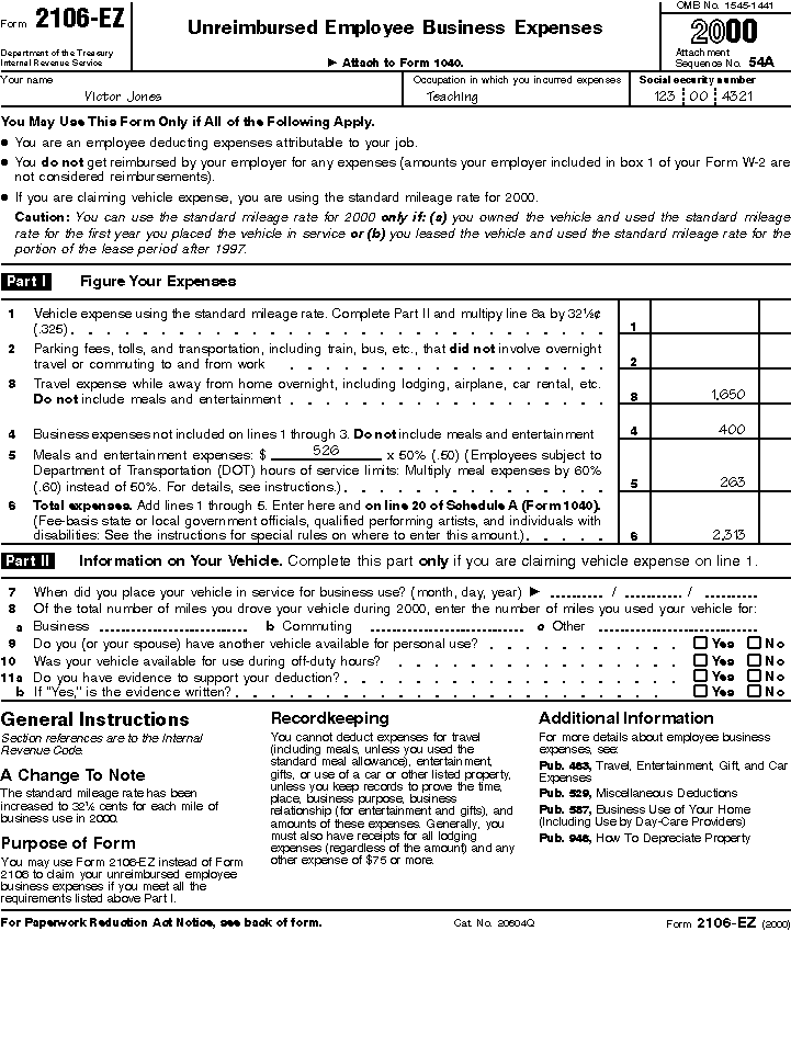 Form 2106-EZ with his tax return. He shows his expenses for the