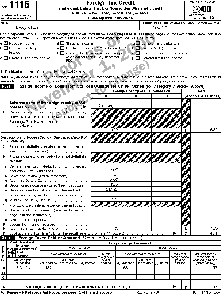only Form 1116 that Betsy must complete, she does not need to fill in