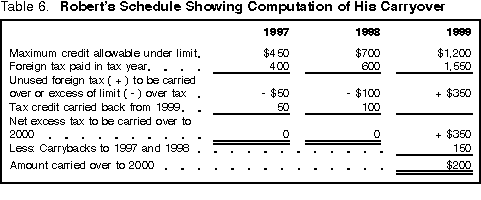 Table 6. Robert's Schedule Showing Computation of His Carryover