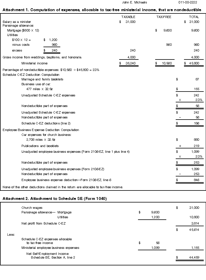 The parts of Rev. and Mrs. Michaels' income tax return are