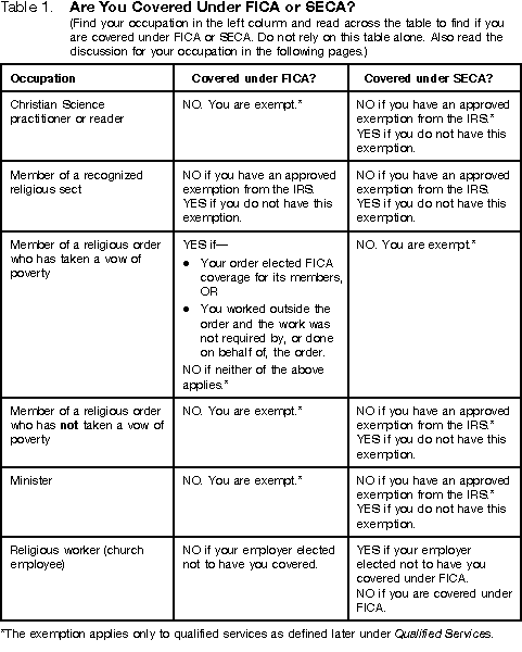 Table 1. Are You Covered Under FICA or SECA?