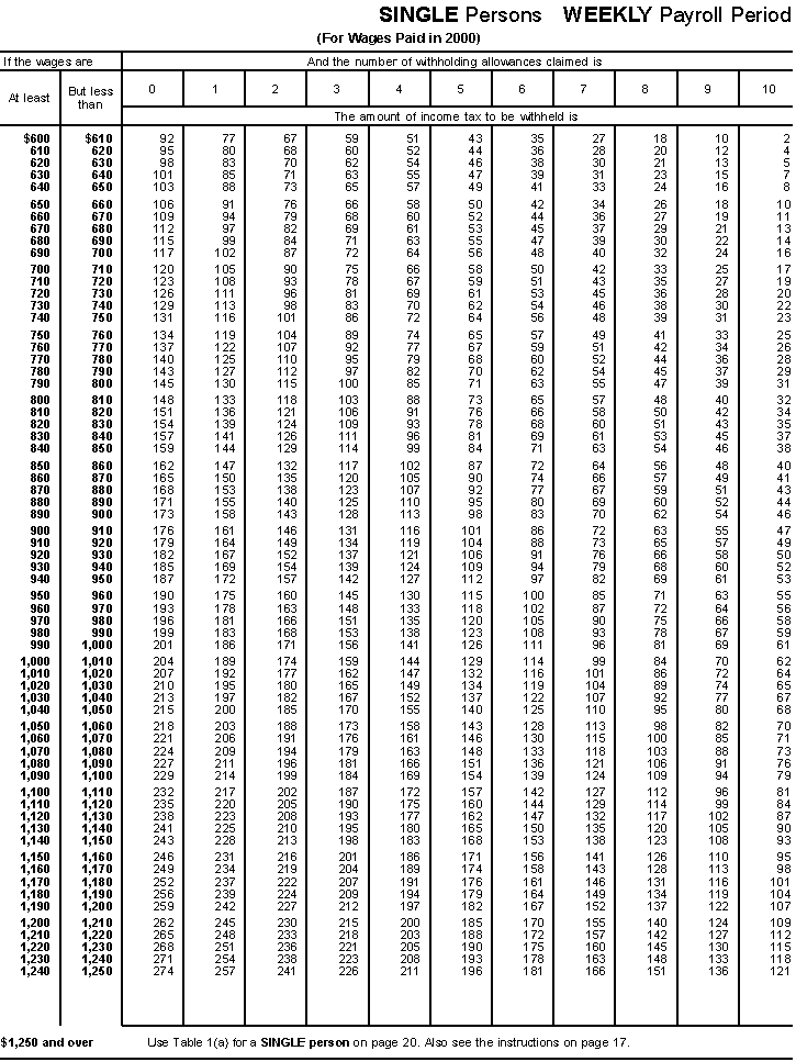 - Single Persons - Weekly, Paid Wages $600 - $1250