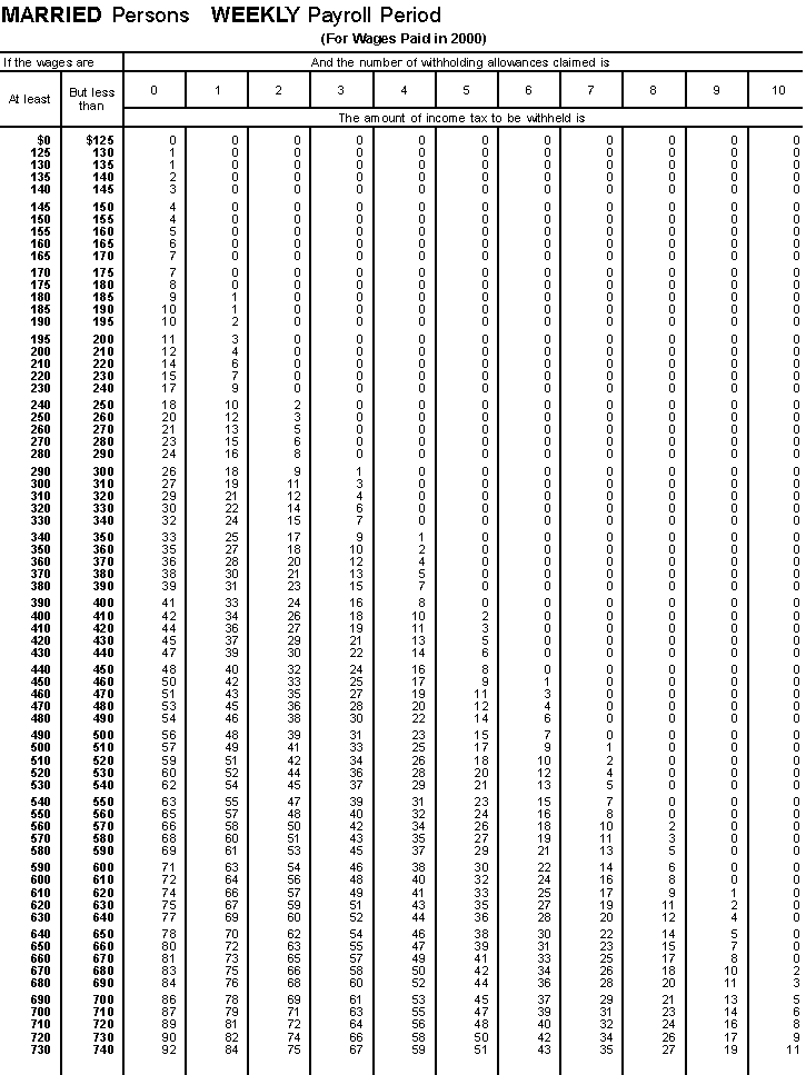 - Married Persons - Weekly, Paid Wages $0 - $740