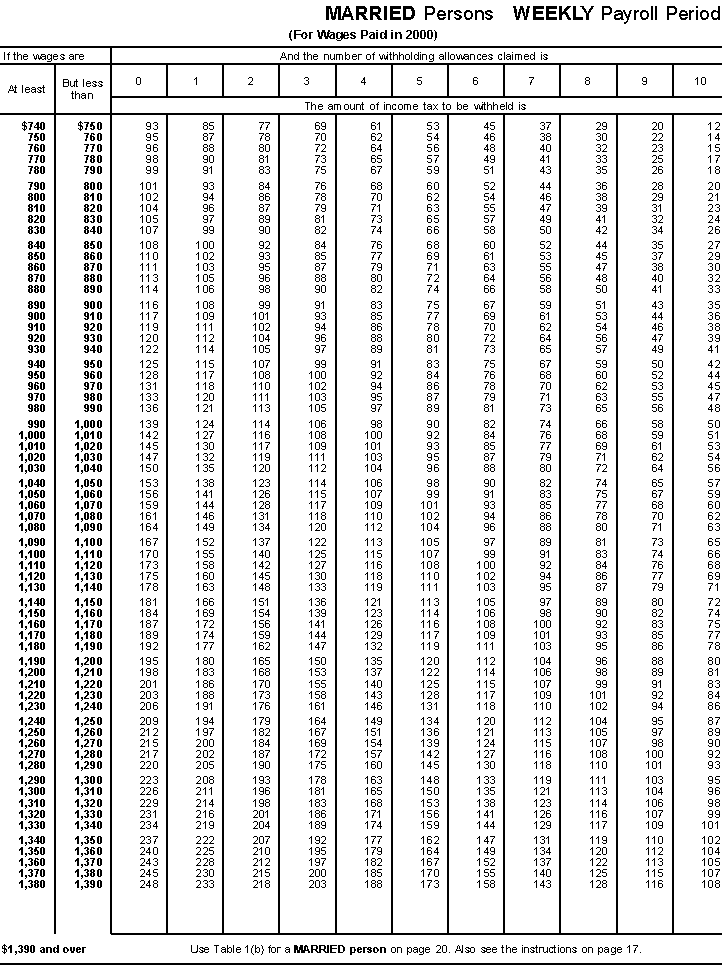 - Married Persons - Weekly, Paid Wages $740 - $1390
