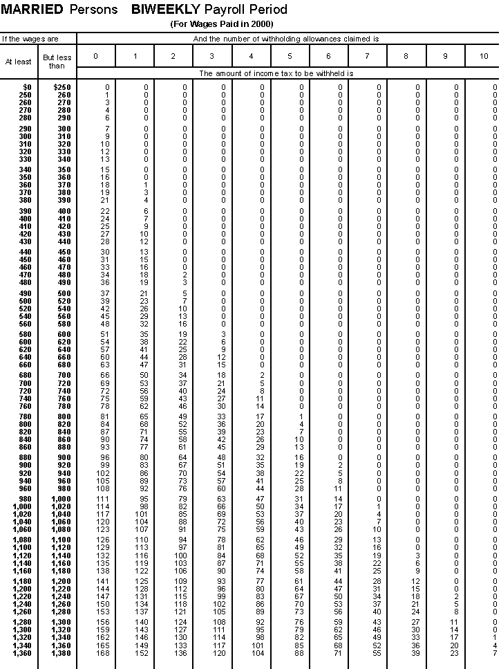 - Married Persons - Bi-Weekly, Paid Wages $0 - $1380