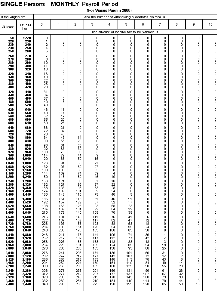 - Single Persons - Monthly, Paid Wages $0 - $2440