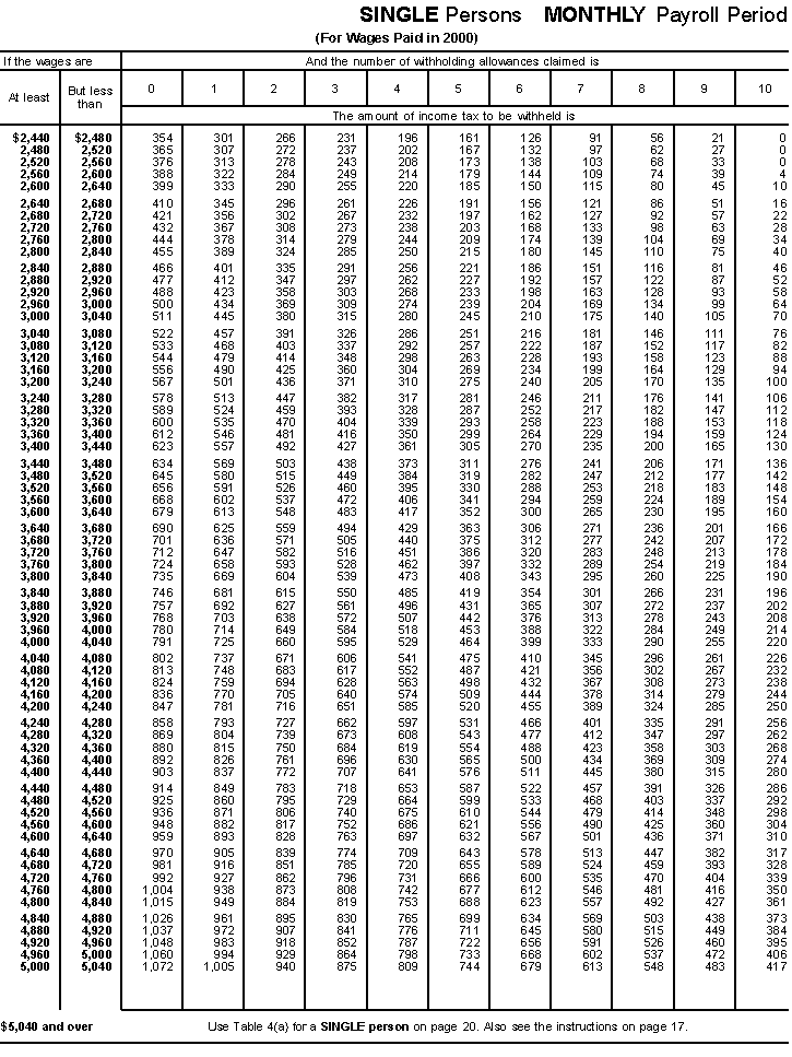 - Single Persons - Monthly, Paid Wages $2440 - $5040