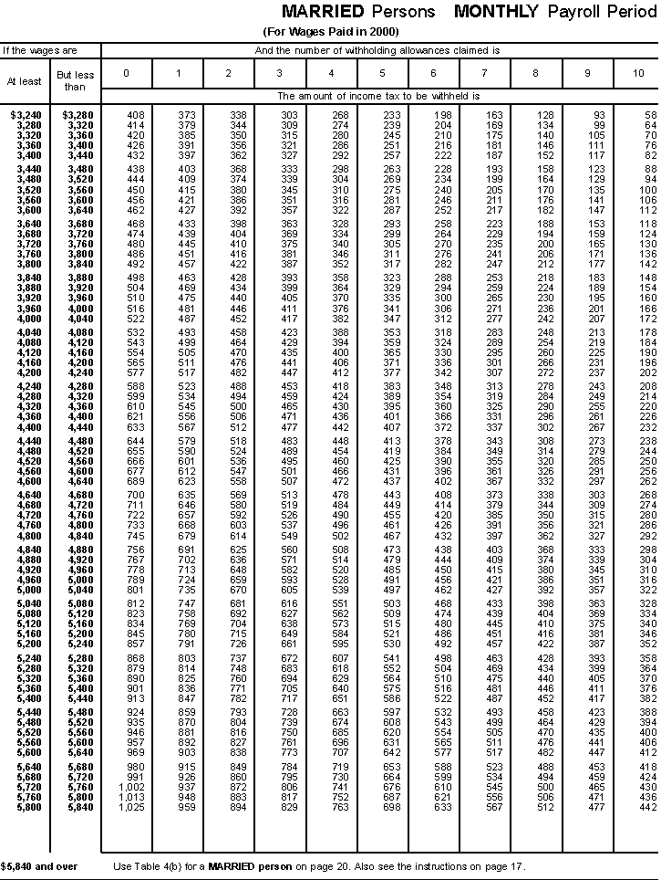 - Married Persons - Monthly, Paid Wages $3240 - $5840