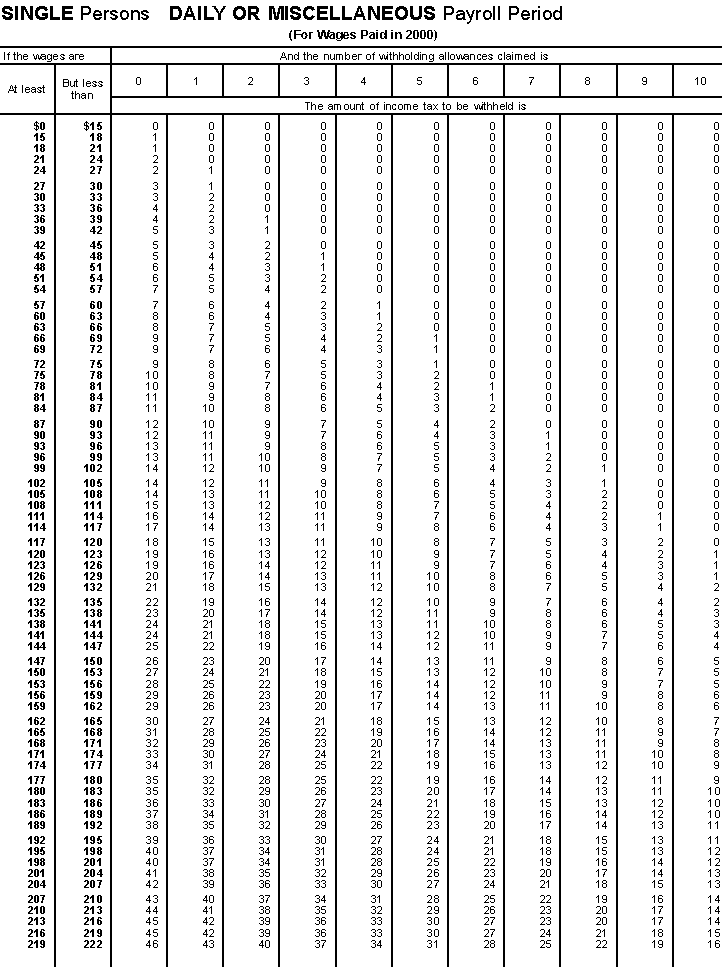- Married Persons - Daily or Misc., Paid Wages $0 - $234