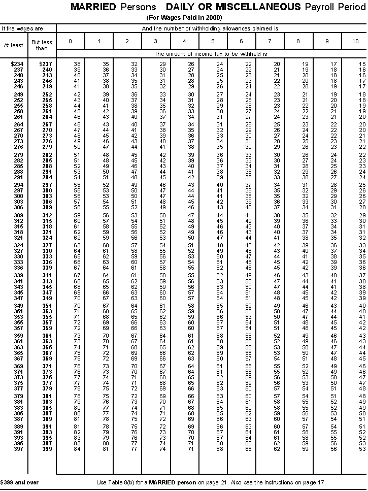 - Married Persons - Daily or Misc., Paid Wages $234 - $399