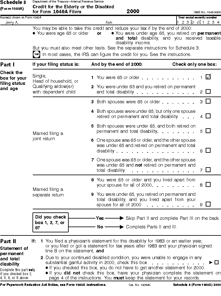 Jerry figures the credit on Schedule 3 (Form 1040A) as follows:
