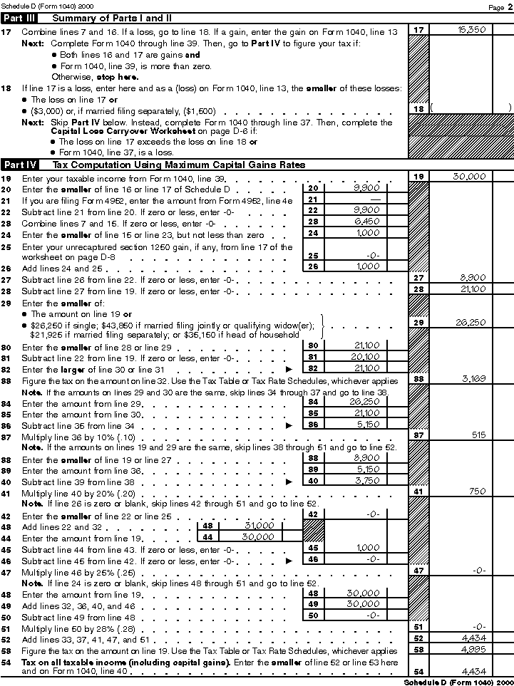 from that line, $30,000, on line 19 of Schedule D. After filling out