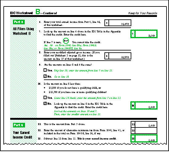 the EIC. They use EIC Worksheet B (shown here) to figure