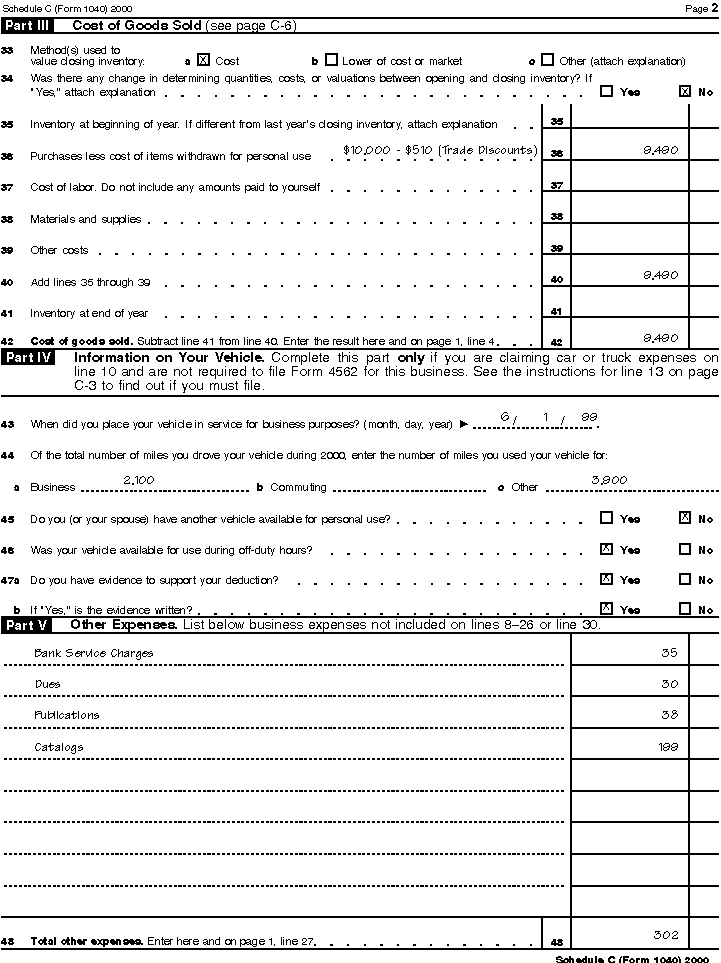 Schedule C (Form 1040), page 2, for Kathleen Woods