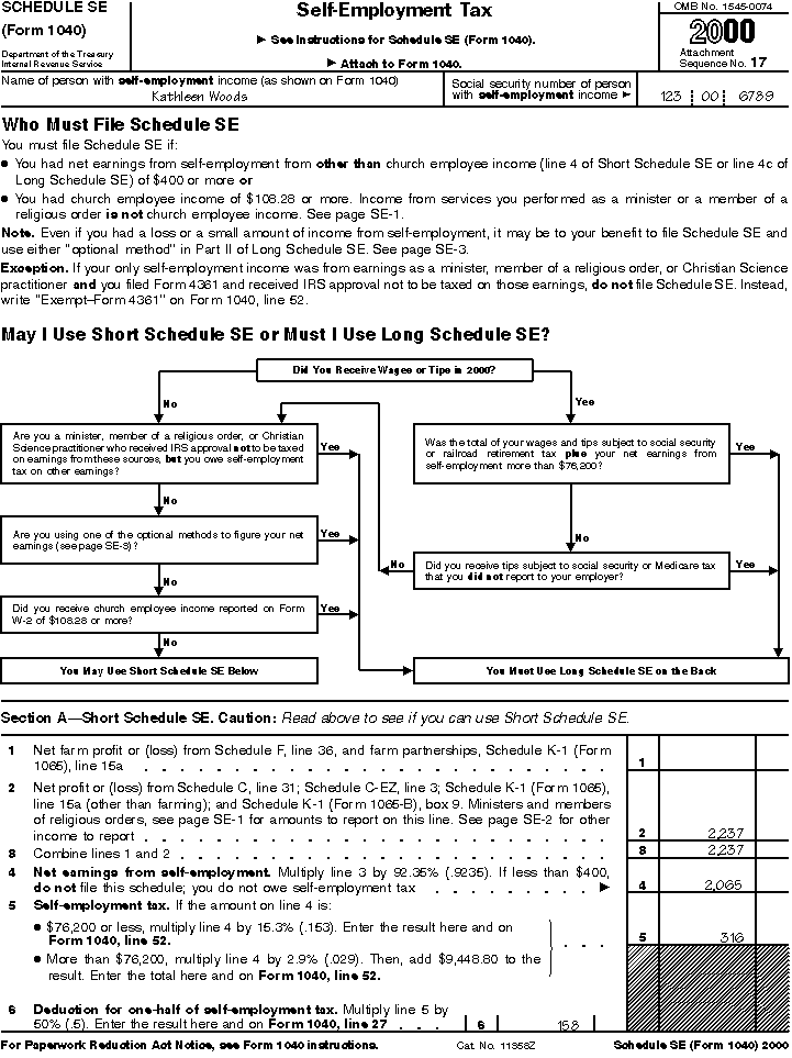 Samples of Schedule C and Schedule SE for Kathleen Woods are