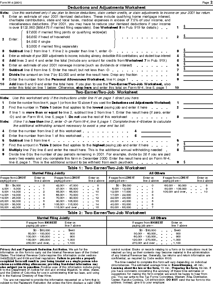 blank Form W-4 page 2