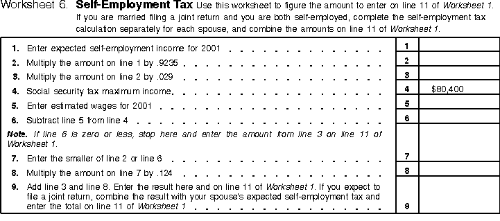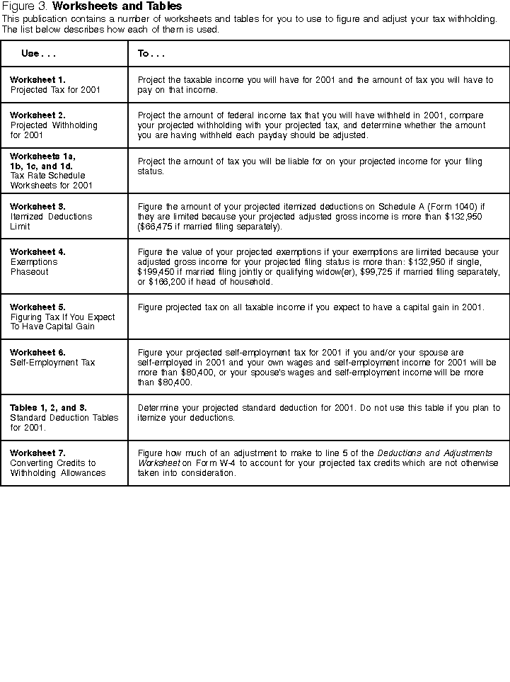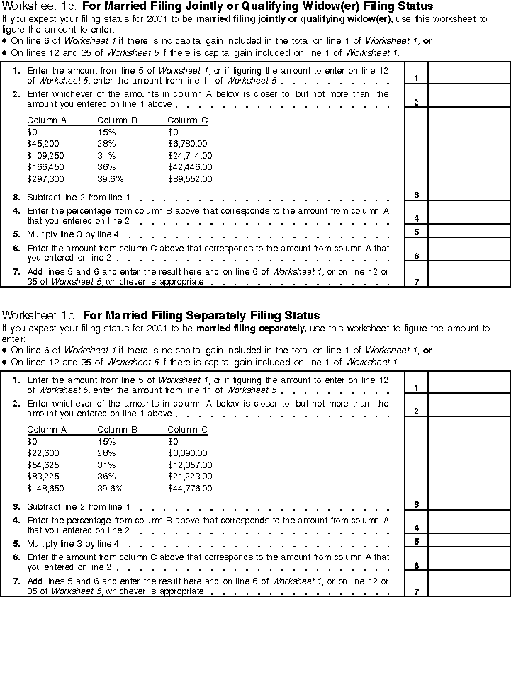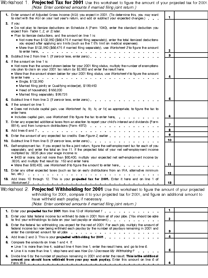 Worksheets 1 and 2 -- Projected Tax for 2001 and Projected Withholding for 2001