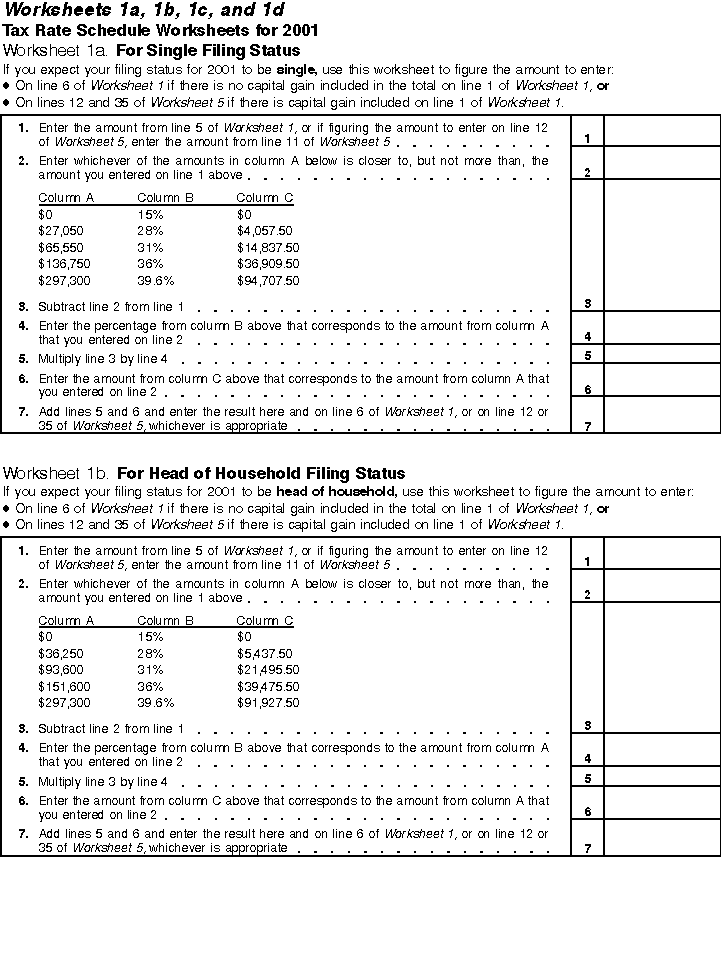 Worksheets 1a and 1b Tax Rate Schedules for S and HoH