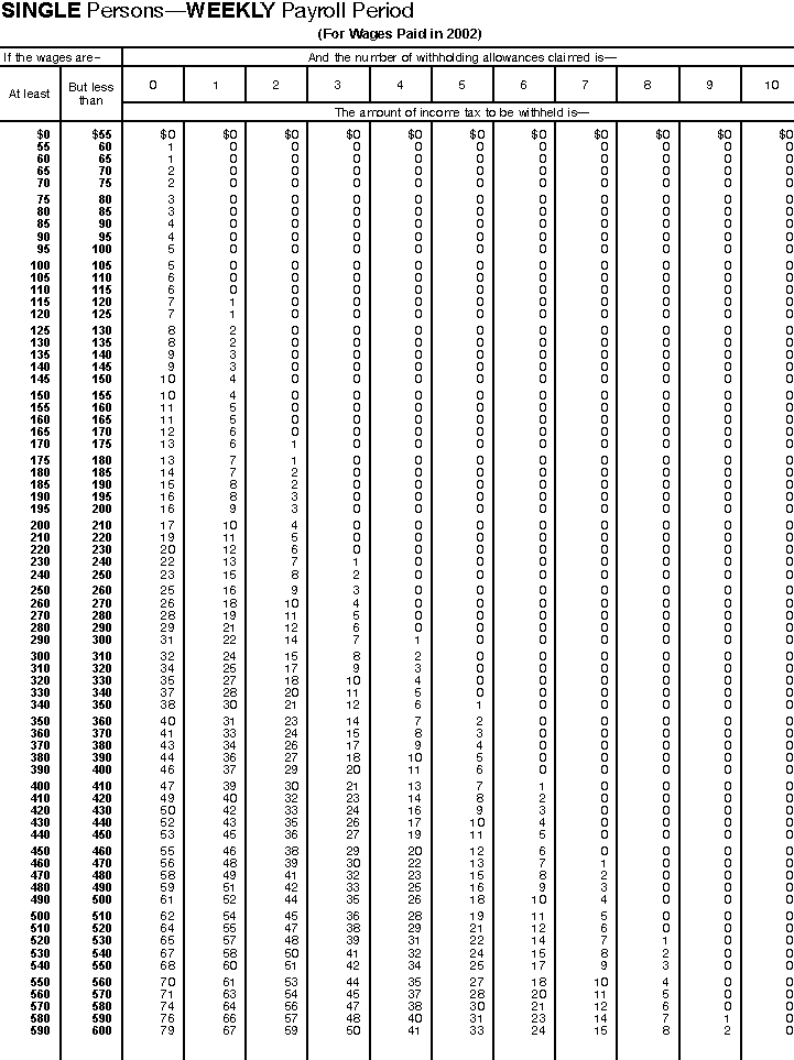 Table 5. Percentage Method--2002 Amount for One Withholding Allowance