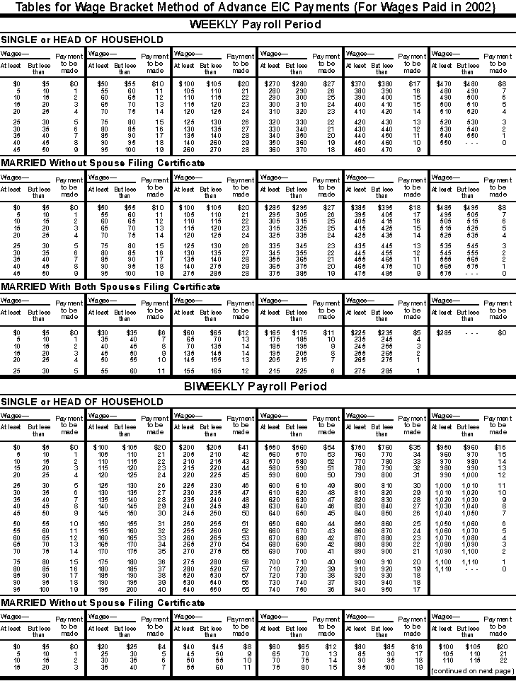certificates. Find the advance EIC payment shown in the appropriate table for the amount of wages paid.