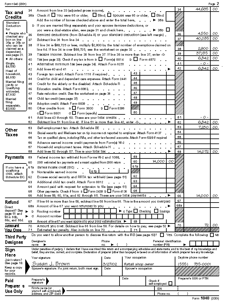 Page 2 of Schedule C (Form 1040) for Susan J. Brown