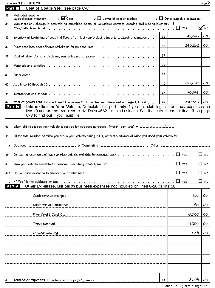 Susan uses Part III on page 2 of Schedule C to figure her cost of