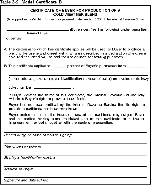 - An unexpired certificate from the buyer for each purchase of kerosene. See Table 3-2.