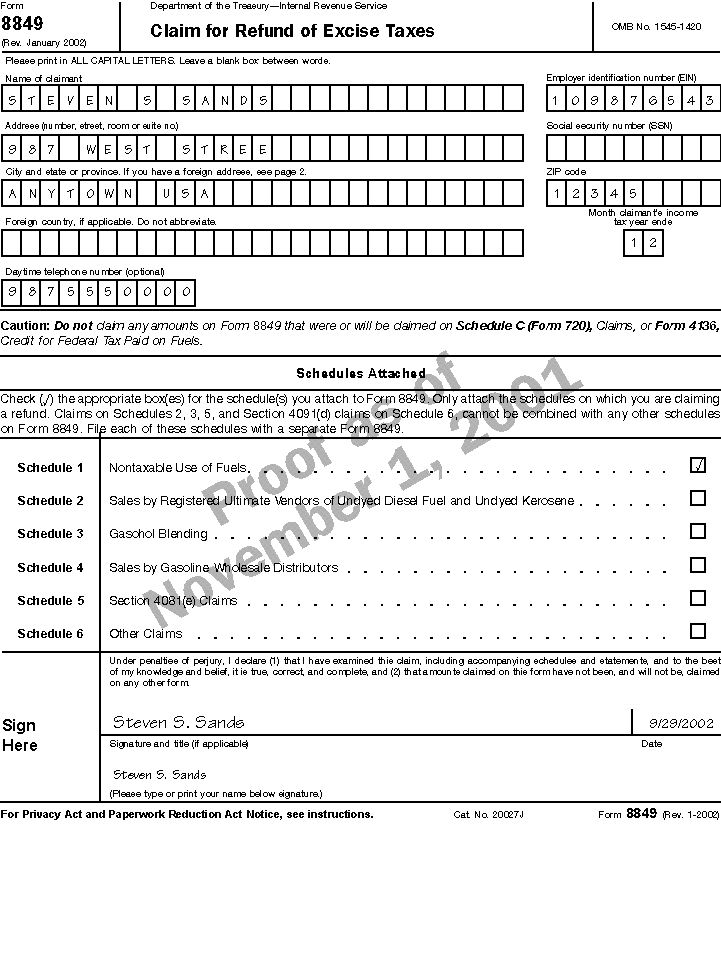 amount ($671) to the second quarter amount ($610) and claims a refund of $1,281 by filing Form 8849 and Schedule 1 (Form 8849), which are shown later.