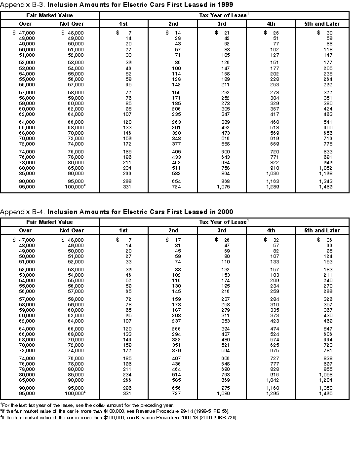 Appendix B-3 and B-4. Inclusion Amounts for Electric Cars First leased in 1999-2000