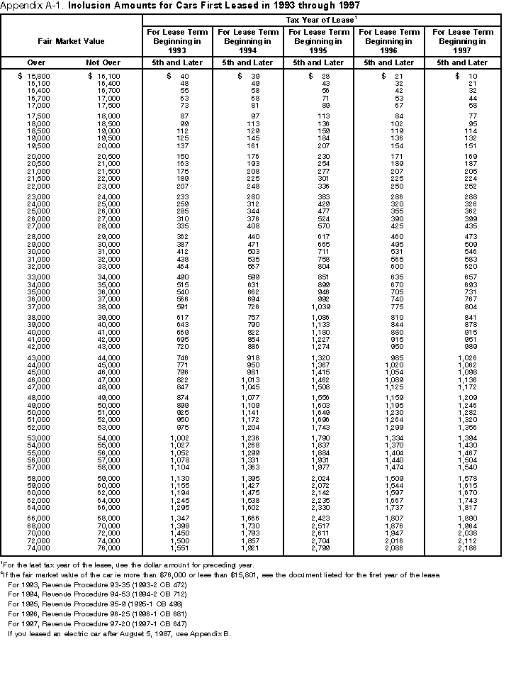 Appendix A-1. Inclusion Amounts for Cars First leased in 1993 through 1997