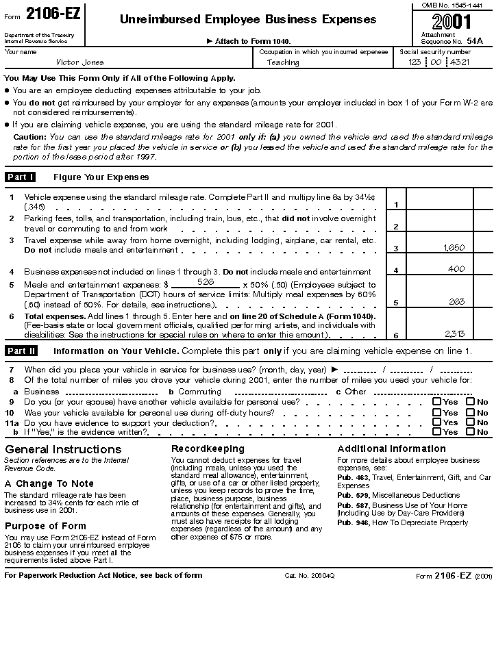 Form 2106-EZ with his tax return. He shows his expenses for the