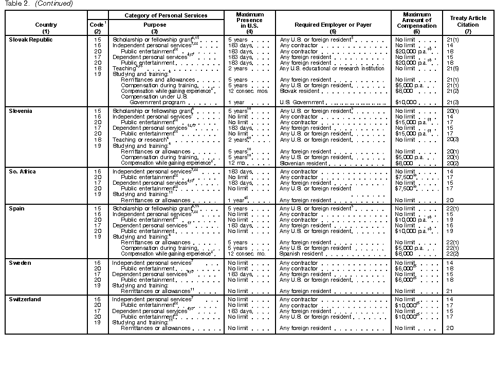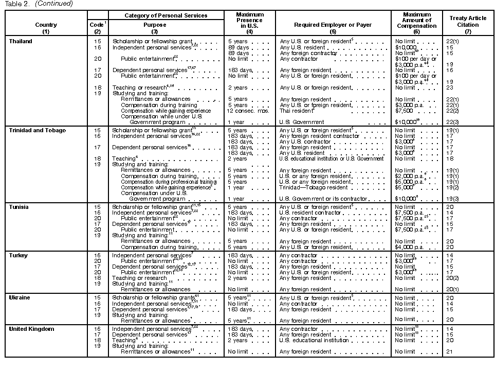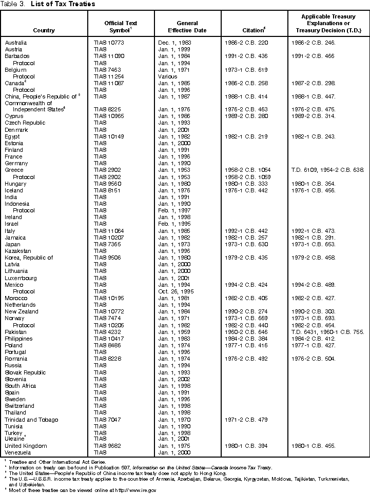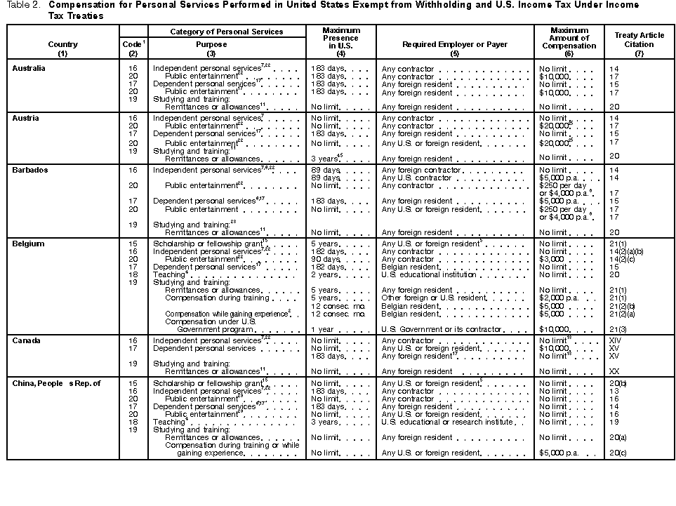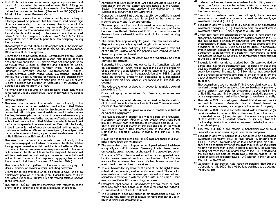 These tables are not meant to be a complete guide to all provisions of every income tax treaty. For detailed information, you must consult the