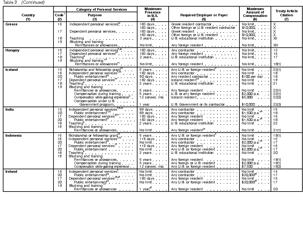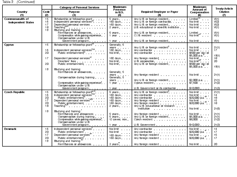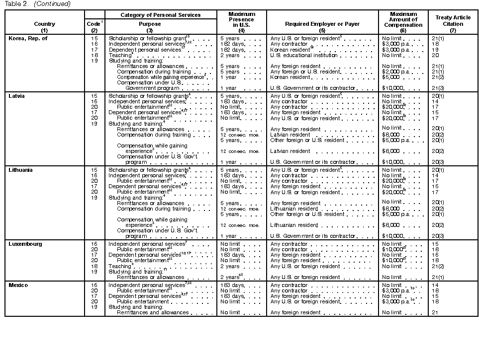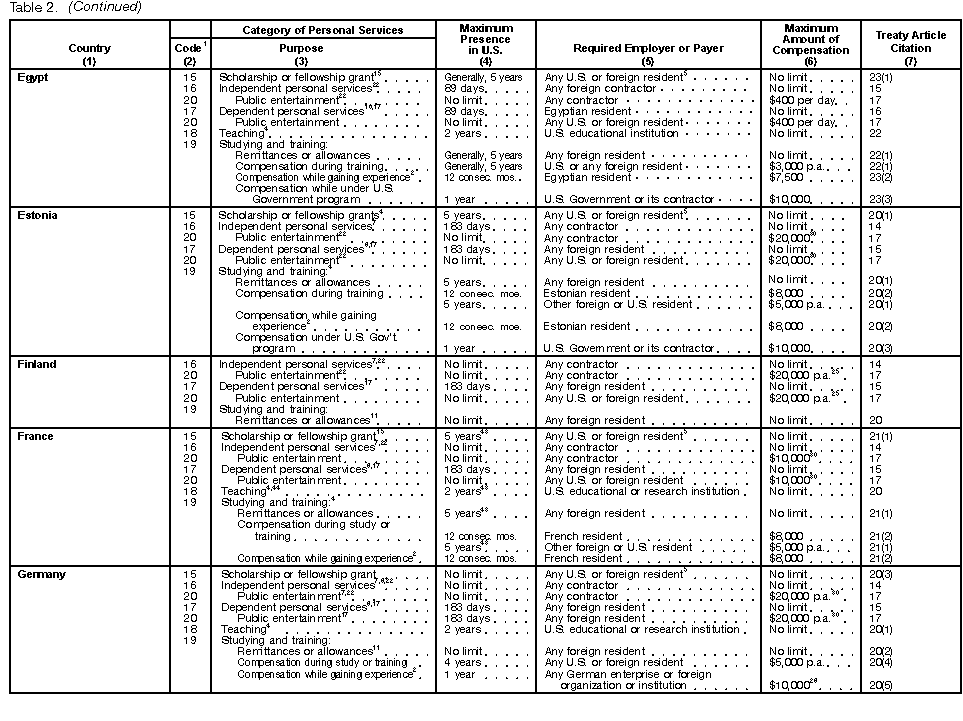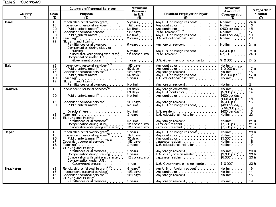 These tables are not meant to be a complete guide to all provisions of every income tax treaty. For detailed information, you must consult the