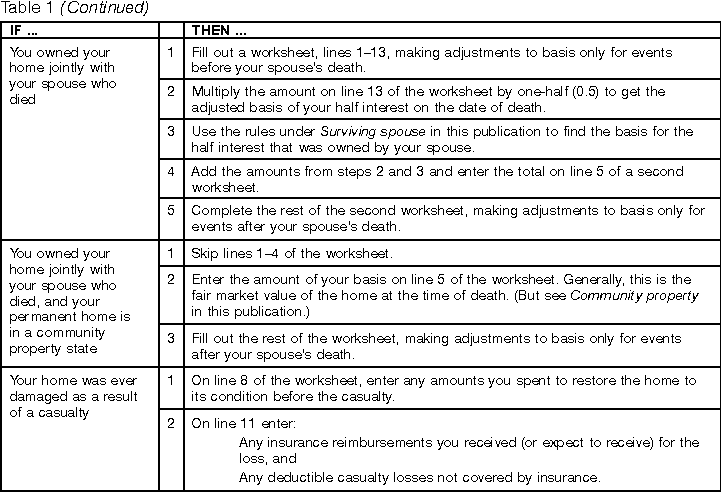 Table 1. How to Use the Adjusted Basis of Home Sold Worksheet in Special Situations