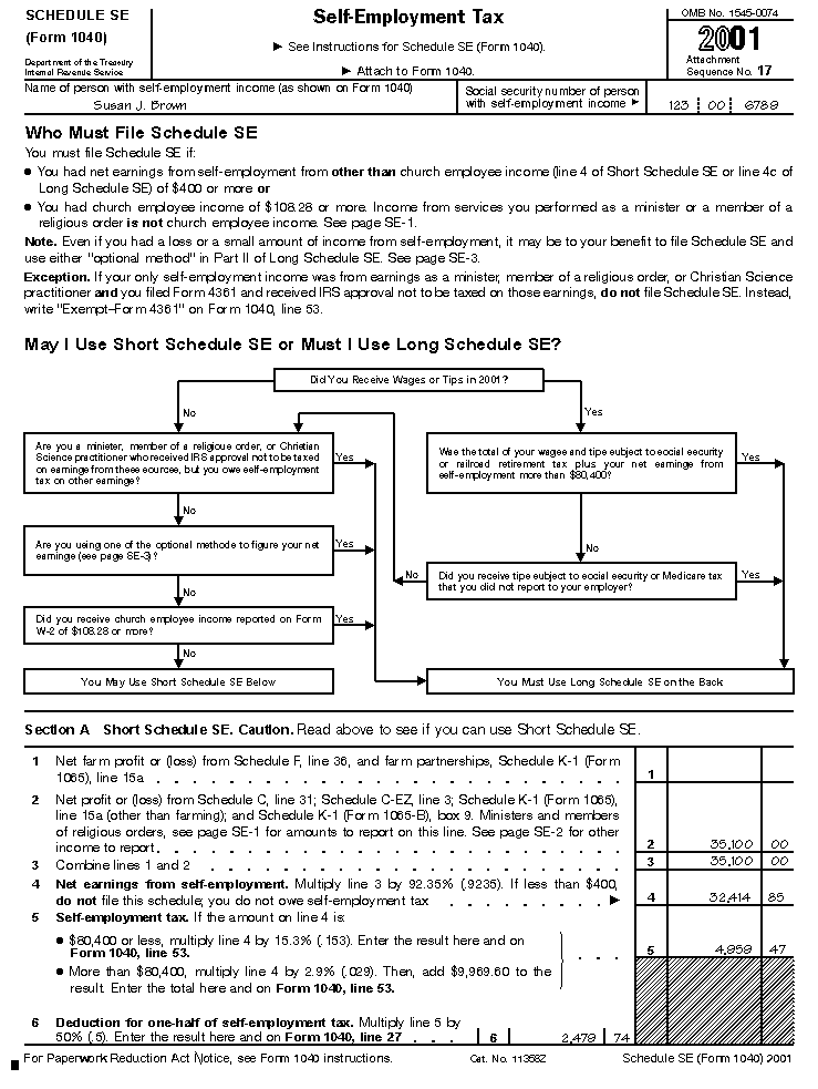 Susan's completed Schedule SE with Short Schedule SE filled out is